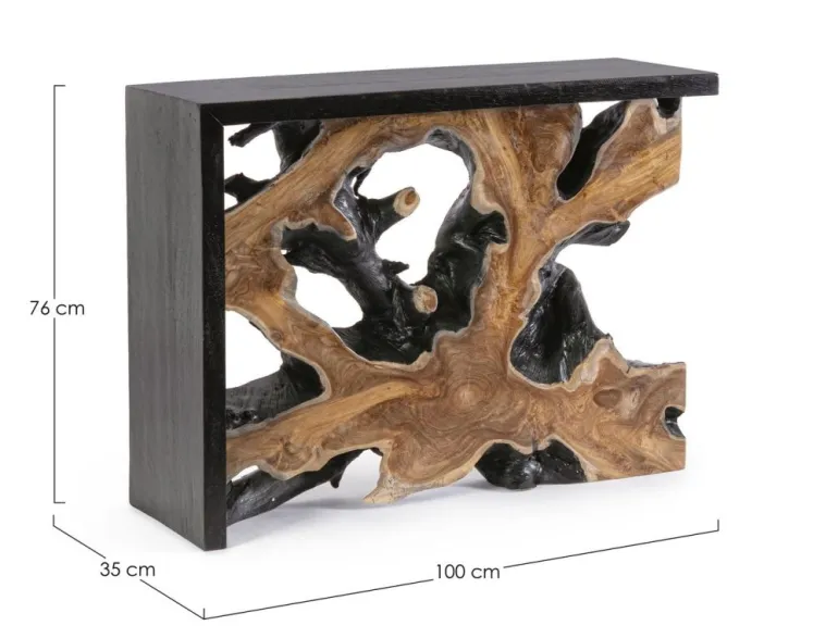 STRUTTURA INTERNA IN RADICI DI TEAK ORIGINALI. STRUTTURA ESTERNA IN LEGNO SUAR. FINITURA A BASE DI NITROCELLULOSA. LE FORME ORIGINALI CREATE DAL LEGNO SONO SOLO INDICATIVE, TUTTI I PRODOTTI SARANNO DIVERSI L’UNO ALL’ALTRO, CON MISURE LEGGERMENTE DIFFERENTI.