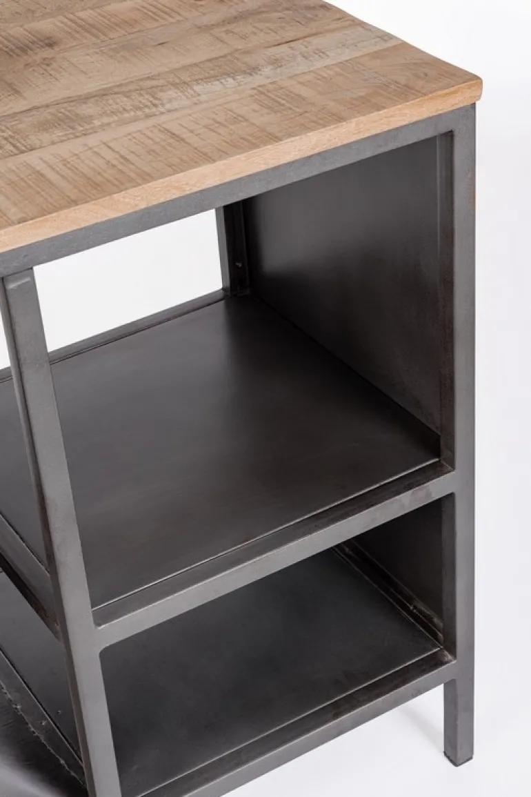 STRUTTURA IN ACCIAIO. PIANO IN LEGNO DI MANGO. TRATTANDOSI DI PRODUZIONE ARTIGIANALE OGNI MODELLO PUO’ VARIARE IN PICCOLI PARTICOLARI COSTRUTTIVI. EVENTUALI PICCOLE CREPE O SPACCATURE SONO DA RITENERSI CARATTERISTICHE PROPRIE AL NATURALE LAVORO DI RECUPERO. DA ASSEMBLARE