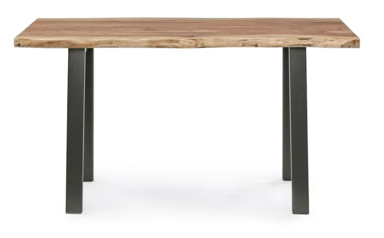 GAMBE IN ACCIAIO VERNICIATO A POLVERE EPOSSIDICA. PIANO IN LEGNO DI ACACIA CON BORDI IRREGOLARI (EFFETTO LEGNO VIVO). FINITURA A BASE DI VERNICE POLIURETANICA. ESSENDO UN PIANO LAVORATO A MANO, LE FORME E LE MISURE DEL LEGNO SONO SOLO INDICATIVE. TUTTI I PRODOTTI SARANNO DIVERSI L’UNO DALL’ALTRO. GAMBE DA ASSEMBLARE.