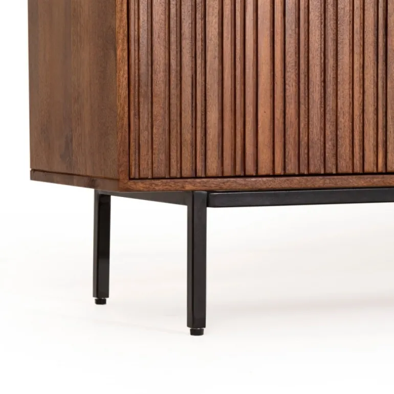 STRUTTURA IN LEGNO DI MANGO. FINITURA CON VERNICE A BASE DI NITROCELLULOSA. SCHIENALI IN MDF. VANO PORTA COMPRENSIVO DI MENSOLA. GAMBE IN ACCIAIO VERNICIATO A POLVERE EPOSSIDICA. GAMBE DA ASSEMBLARE.