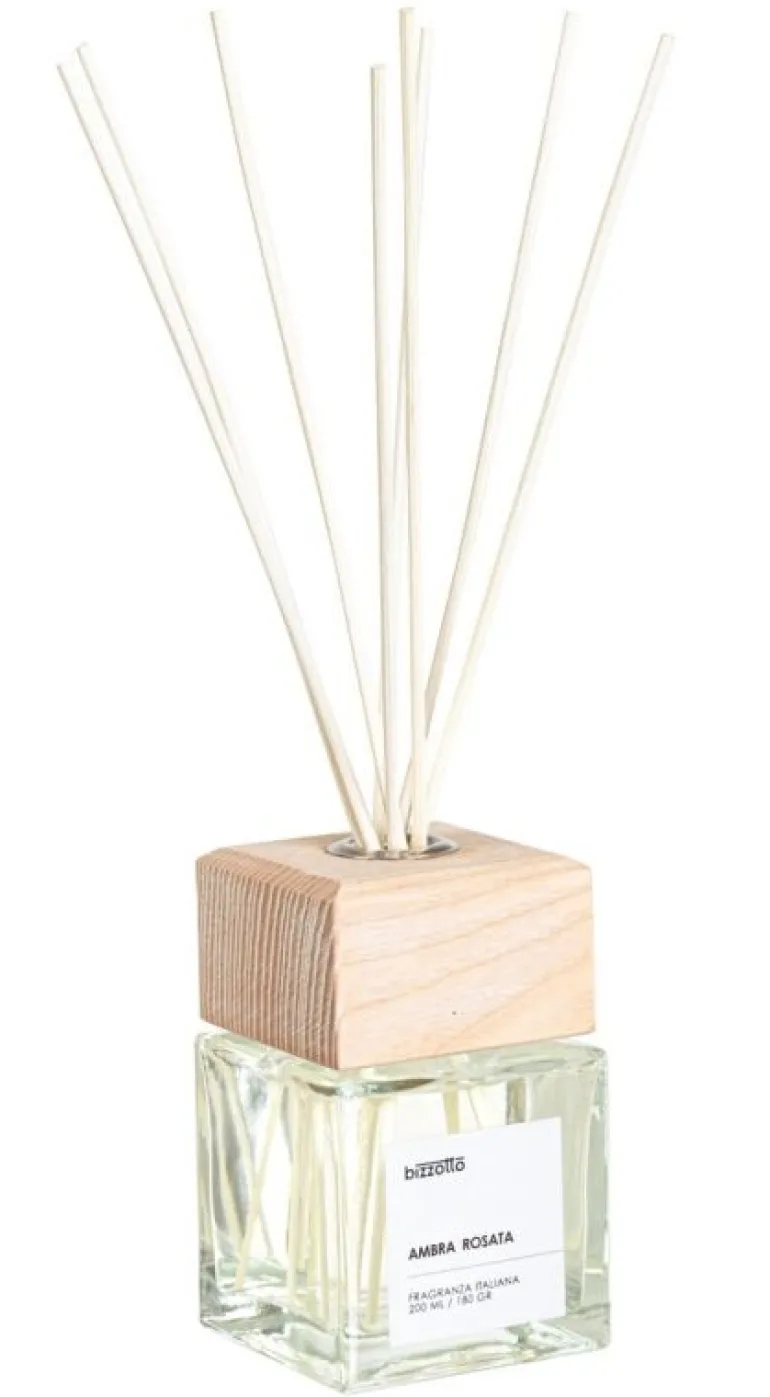 AMBRA ROSATA FRAGRANZA PER AMBIENTI CON 6 BASTONCINI BIANCHI (H 30 CM). PROFUMO APPARTENENTE ALLA FAMIGLIA DEI LEGNOSI. BOTTIGLIA IN VETRO, FORMATO 200 ML. CONTROTAPPO IN PLASTICA E TAPPO DECORATIVO IN LEGNO NATURALE. AREA DI COPERTURA 40 MQ. LIQUIDO E VAPORI FACILMENTE INFIAMMABILI.