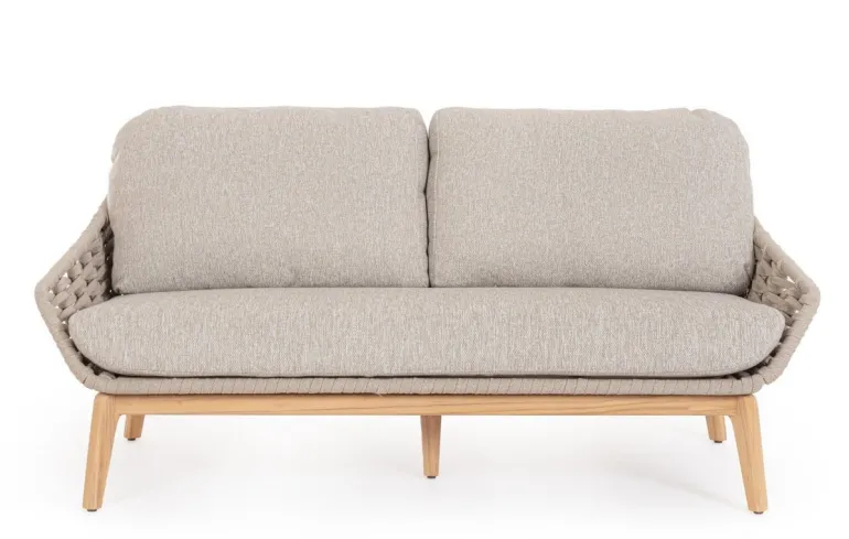 STRUTTURA IN ALLUMINIO VERNICIATA A POLVERE (POLIESTERE). GAMBE IN TEAK – SVLK (LEGNO CERTIFICATO PROVENIENTE DA FORESTE SOSTENIBILI). INTRECCIO PER ESTERNO IN CORDA (POLIPROPILENE). CUSCINI SFODERABILI IN TESSUTO IDROREPELLENTE SUNPROOF OLEFIN (100%POLYPROPYLENE). VITERIA IN ACCIAIO INOSSIDABILE. GAMBE DA ASSEMBLARE.