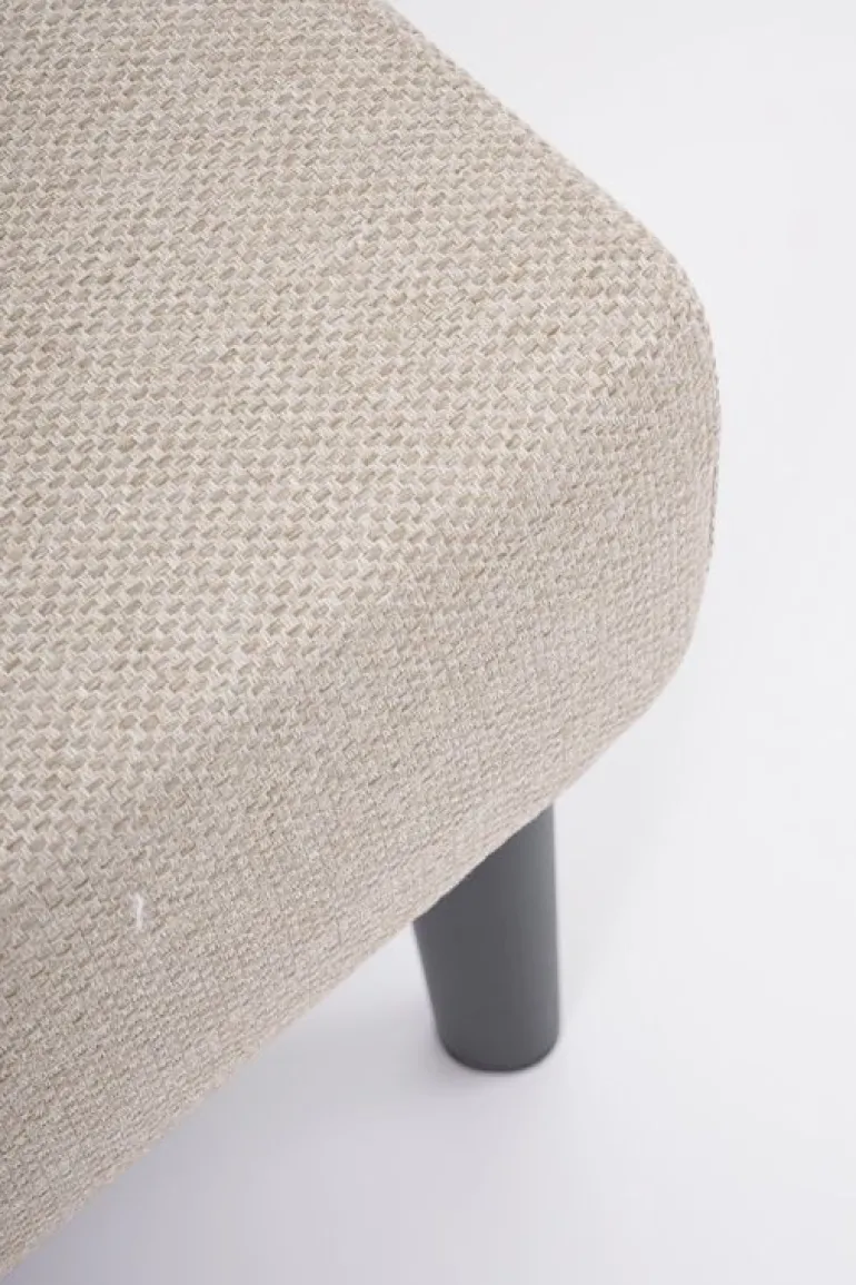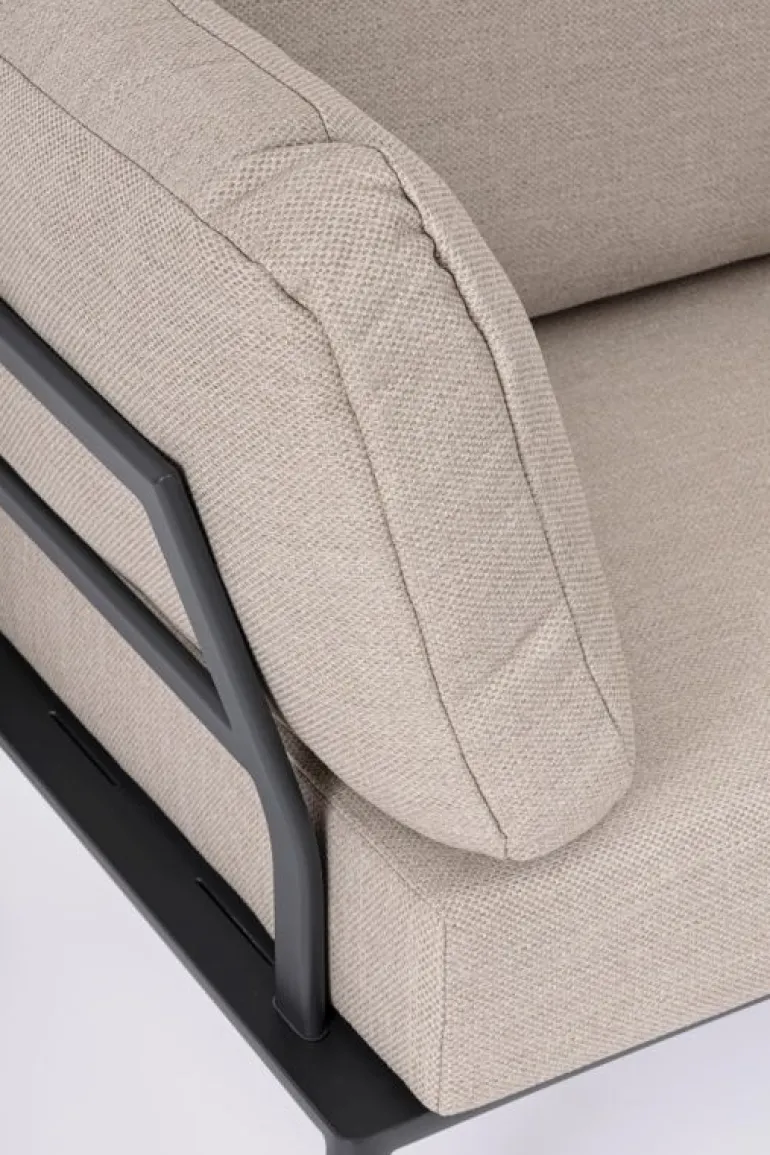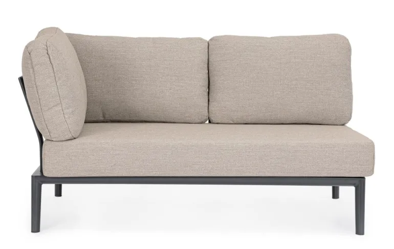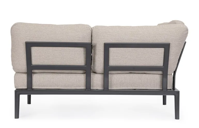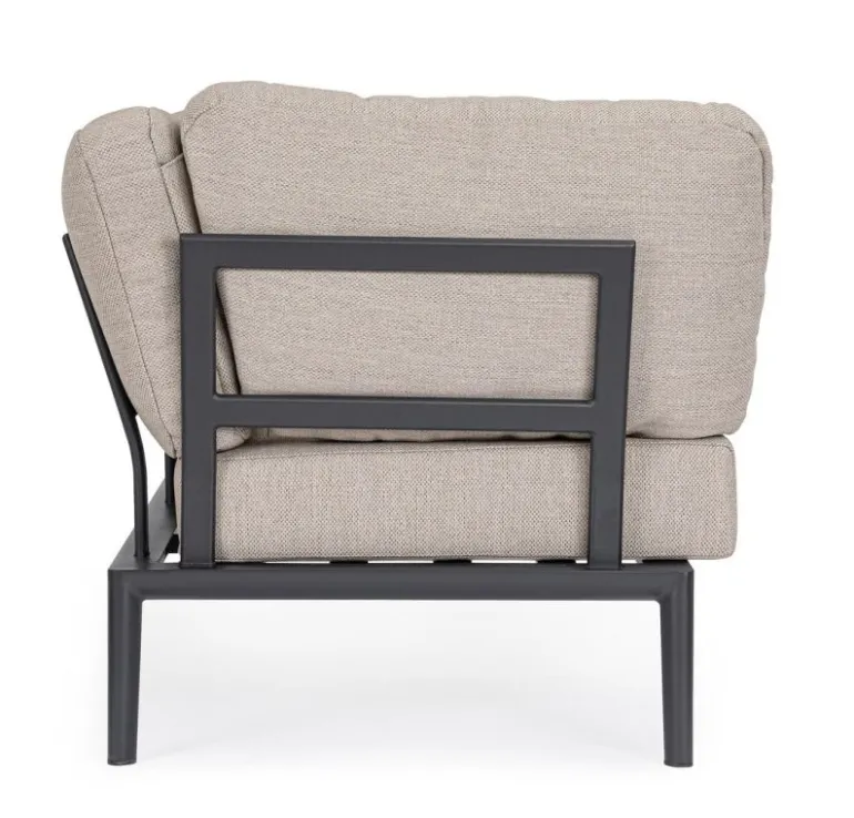 STRUTTURA IN ALLUMINIO VERNICIATA A POLVERE (POLIESTERE). CUSCINI SFODERABILI CON TESSUTO IDROREPELLENTE OLEFIN (100% POLIPROPILENE). SCHIENALI DA INSERIRE.