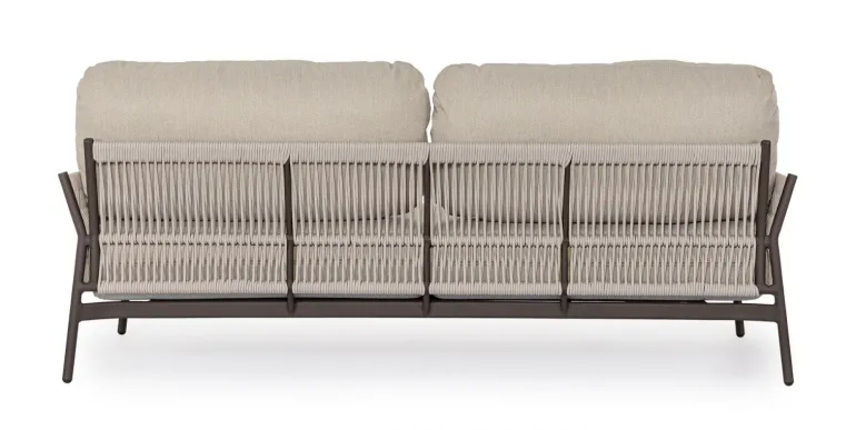 STRUTTURA IN ALLUMINIO VERNICIATO A POLVERE (POLIESTERE). INTRECCIO IN CORDA OLEFIN (100% POLIPROPILENE). CUSCINI SEDUTA E SCHIENALE SFODERABILI IN TESSUTO IDROREPELLENTE OLEFIN (100% POLIPROPILENE).