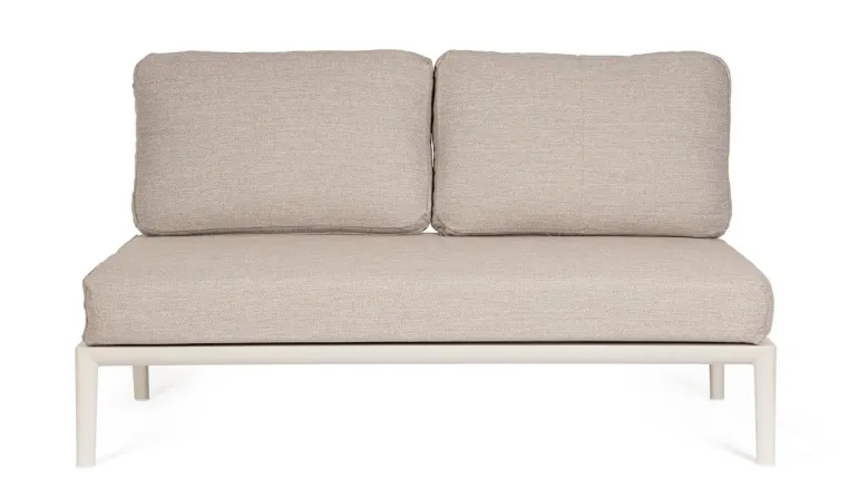 STRUTTURA IN ALLUMINIO VERNICIATA A POLVERE (POLIESTERE). CUSCINI SFODERABILI CON TESSUTO IDROREPELLENTE OLEFIN (100% POLIPROPILENE). SCHIENALI DA INSERIRE.