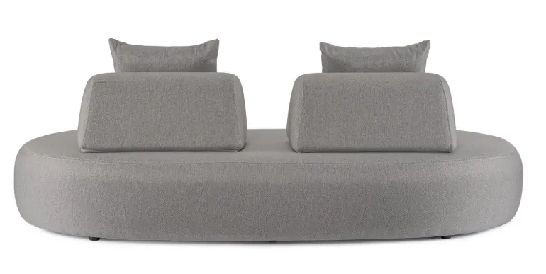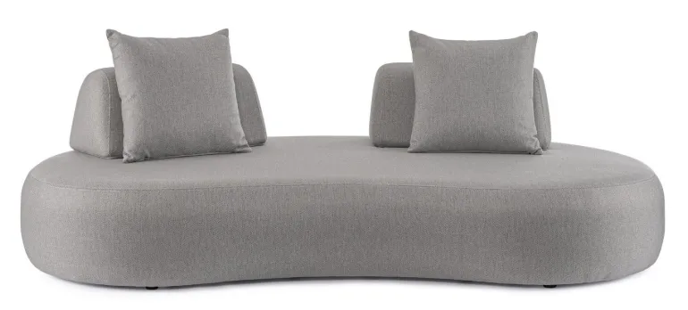 DIVANO CON STRUTTURA IN ALLUMINIO. SCHIENALI REMOVIBILI CON STRUTTURA IN ACCIAIO, GALVANIZZATA A CALDO E VERNICIATA A POLVERE (POLIESTERE). SCHIENALI E CUSCINI SFODERABILI IN TESSUTO PER ESTERNO OLEFIN (100% POLIPROPILENE, 285GR/M2), IDROREPELLENTE E RESISTENTE AI RAGGI UV (GRADO 7), IMPERMEABILIZZATO INTERNAMENTE CON RIVESTIMENTO IN TESSUTO (POLIURETANO). IMBOTTITURA IN SCHIUMA POLIURETANICA, DENSITA’ SEDUTA 38KG/M3, SCHIENALI 20KG/M3. ARTICOLO COMPOSTO DA: N °1 DIVANO, N°2 SCHIENALI MEZZALUNA, N°2 CUSCINETTI.