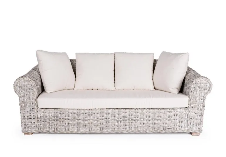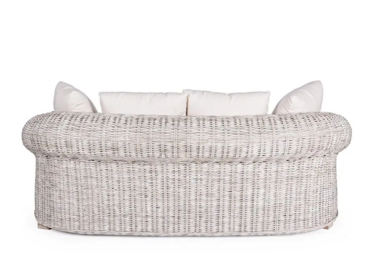 STRUTTURA IN RATTAN, INTRECCIO IN KUBU, FINITURA A BASE DI NITROCELLULOSA. PIEDINI IN LEGNO DI MANGO. CUSCINI SFODERABILI CON TESSUTO PER USO INTERNO (LINO). SI RACCOMANDA DI NON ESPORRE IL MOBILE ALLA LUCE DIRETTA DEL SOLE E ALLE INTEMPERIE. IMBALLO SENZA CARTONE.