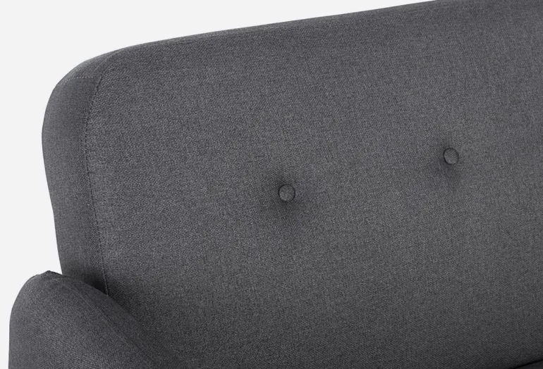 STRUTTURA IN LEGNO DI EUCALIPTO. GAMBE IN ACCIAIO VERNICIATO A POLVERE EPOSSIDICA. IMBOTTITURA IN SCHIUMA POLIURETANICA DENSITA’ DA 23 KG/M3 A 50 KG/M3. RIVESTIMENTO IN TESSUTO (100% POLIESTERE). DA ASSEMBLARE.