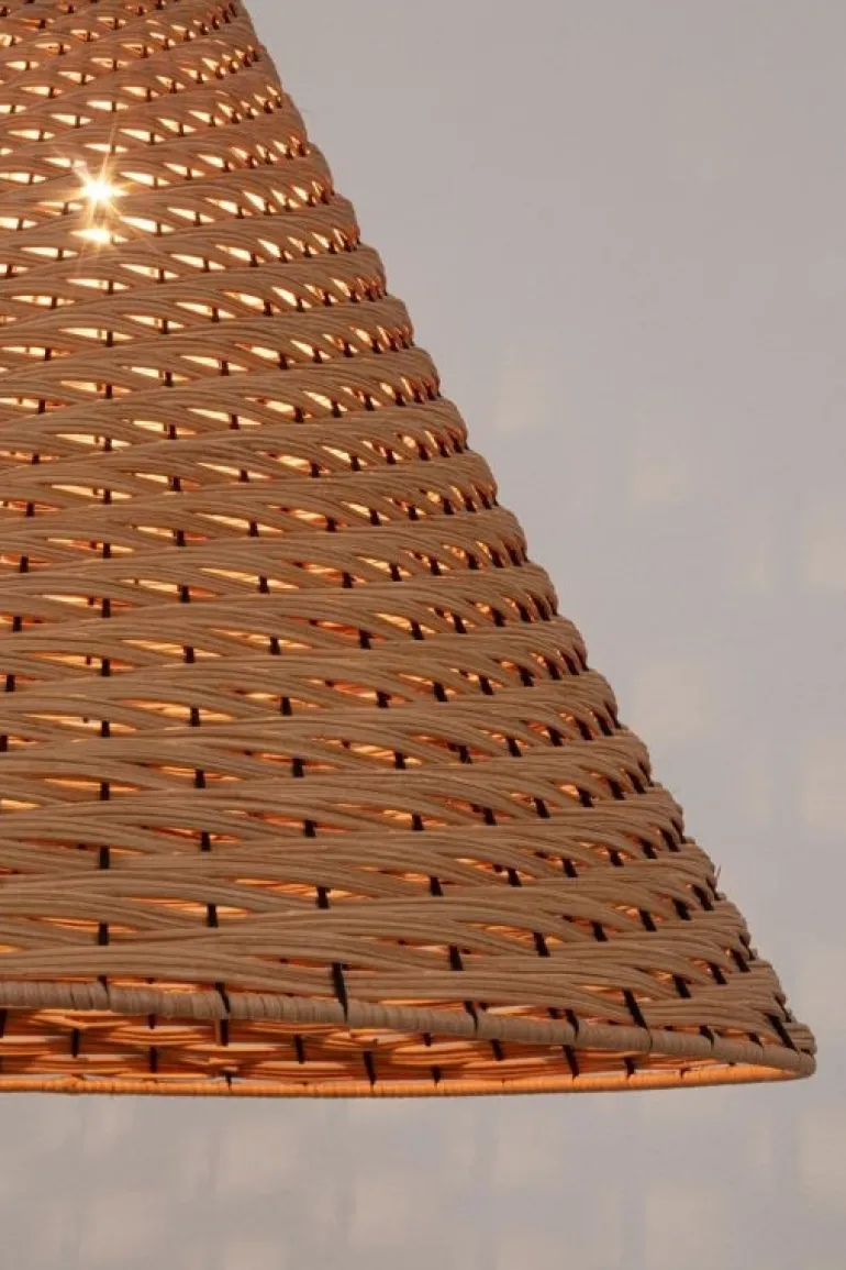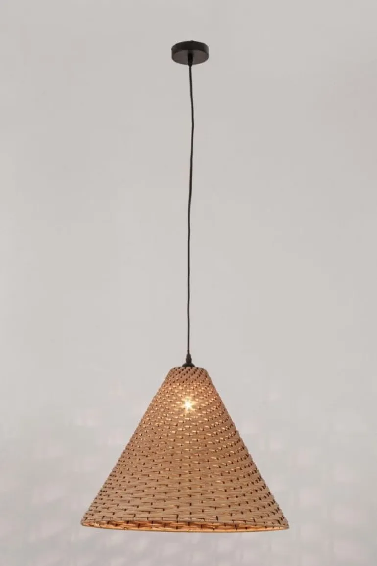 METALLO E RATTAN. LUNGHEZZA FILO 120 CM. LAMP. E27 MAX 40W, E27 8-11W COMP. FLUOR. INTEGR. RISP. EN., E27 28W ALOG. RISP. EN. LAMPADINA NON INCLUSA. IP20.