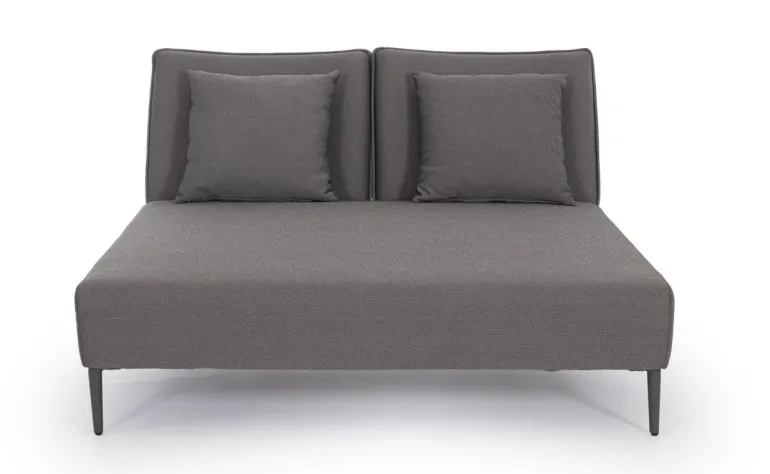 STRUTTURA IN ALLUMINIO. SEDUTA E SCHIENALE (RECLINABILE IN LIBERA POSIZIONE) NON SFODERABILI IN TESSUTO PER ESTERNO IN OLEFIN (100% POLIPROPILENE, 285GR/M2), IDROREPELLENTE E RESISTENTE AI RAGGI UV (GRADO 7), IMPERMEABILIZZATO INTERNAMENTE CON RIVESTIMENTO IN TESSUTO (POLIURETANO). IMBOTTITURA IN SCHIUMA POLIURETANICA, DENSITA’ 40KG/M3. INCLUSO DI