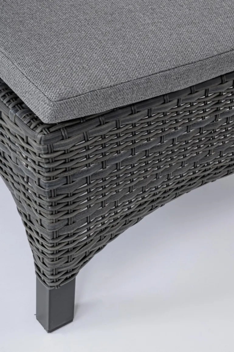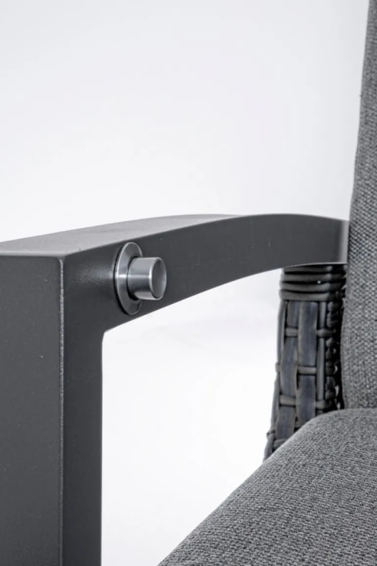 STRUTTURA IN ALLUMINIO, VERNICIATA A POLVERE (POLIESTERE), INTRECCIO IN FIBRA SINTETICA (MULTI-MISURA). SCHIENALE RECLINABILE IN LIBERA POSIZIONE. CUSCINI SFODERABILI CON TESSUTO OLEFIN (100% POLIPROPILENE). VITERIA IN ACCIAIO INOSSIDABILE. SCHIENALE DA ASSEMBLARE.