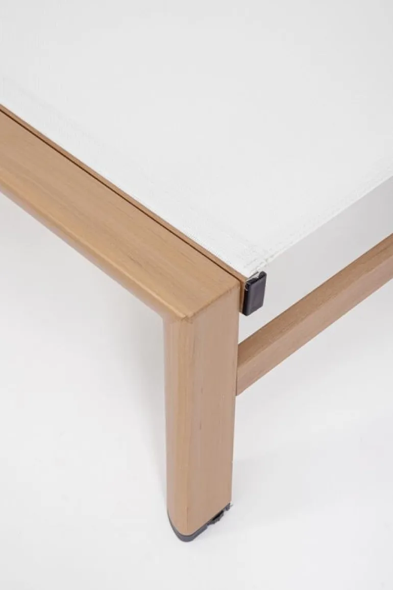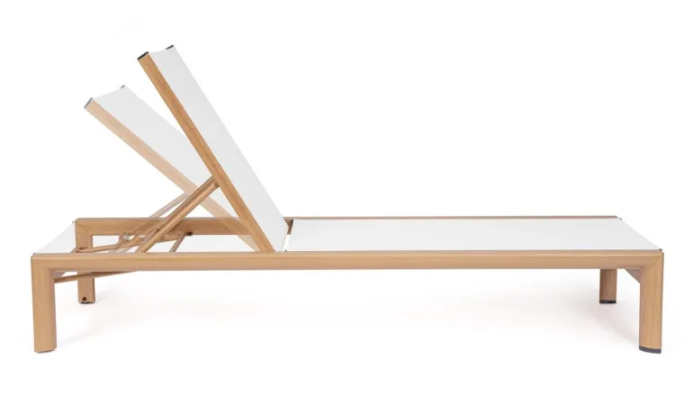 STRUTTURA IN ALLUMINIO, VERNICIATO A POLVERE (POLIESTERE) EFFETTO LEGNO. SEDUTA E SCHIENALE RIVESTITI IN TEXTILENE 2X1. SCHIENALE RECLINABILE (4 POSIZIONI). VITERIA IN ACCIAIO INOSSIDABILE. DA ASSEMBLARE.