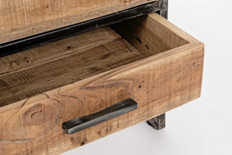 STRUTTURA IN ACCIAIO VERNICIATO A POLVERE EPOSSIDICA, RIPIANI IN LEGNO D’ACACIA, SCHIENALE IN COMPENSATO. FINITURA ACRILICA PROTETTIVA.