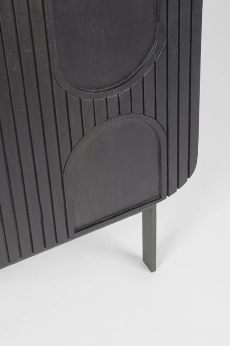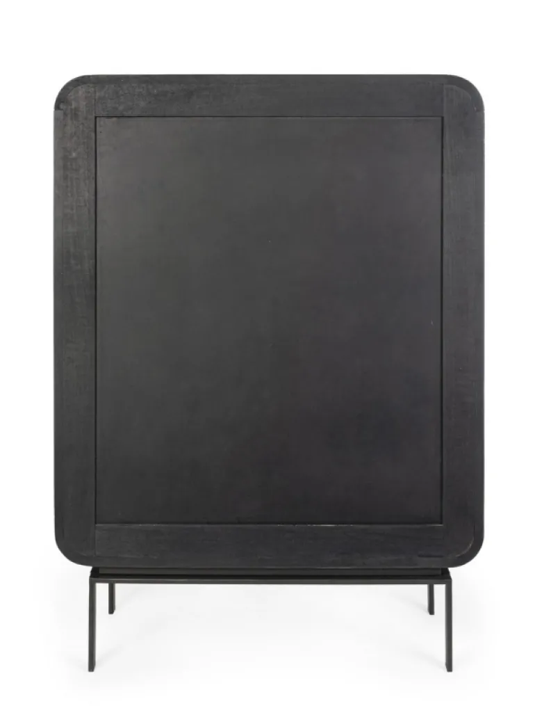 STRUTTURA IN LEGNO DI MANGO, SCHIENALE IN MDF. FINITURA A BASE DI NITROCELLULOSA. BASE GAMBE IN ACCIAIO VERNICIATO A POLVERE EPOSSIDICA. VANO PORTA COMPRENSIVO DI MENSOLA. GAMBE DA ASSEMBLARE.