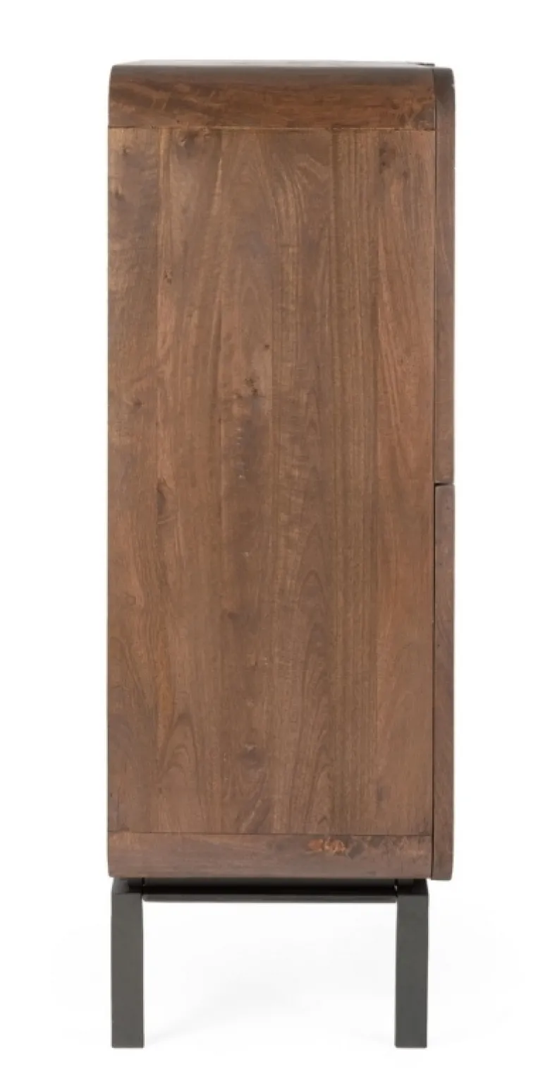 STRUTTURA IN LEGNO DI MANGO, SCHIENALE IN MDF. FINITURA CON VERNICE A BASE D’ACQUA. BASE GAMBE IN ACCIAIO VERNICIATO A POLVERE EPOSSIDICA. VANO PORTA COMPRENSIVO DI MENSOLA. GAMBE DA ASSEMBLARE.