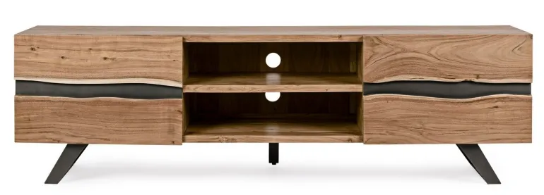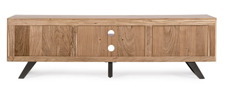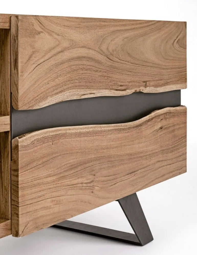 STRUTTURA IN LEGNO DI ACACIA, GAMBE IN ACCIAIO VERNICIATO A POLVERE EPOSSIDICA. PORTE CON INSERTI IN METALLO. FINITURA A BASE DI VERNICE POLIURETANICA. GAMBE DA ASSEMBLARE.