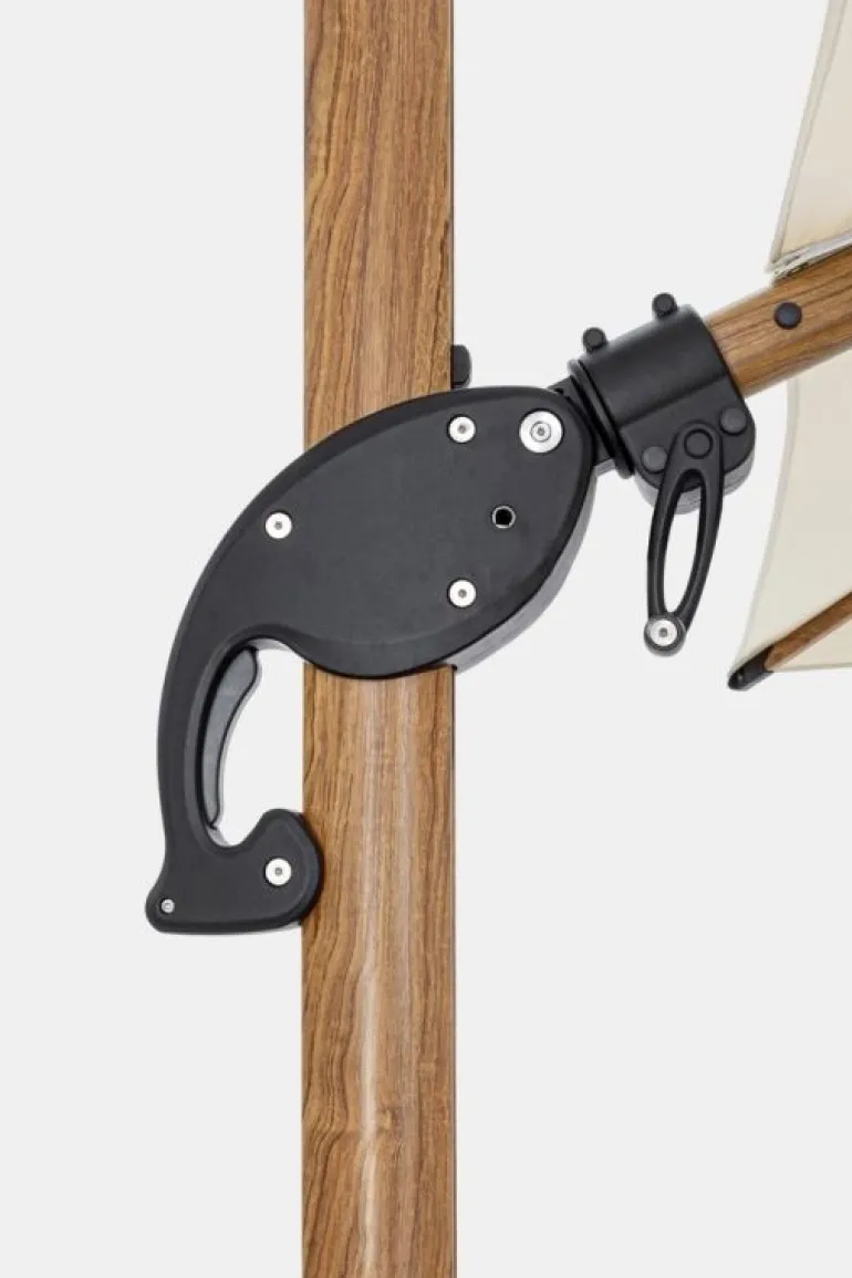 STRUTTURA IN ALLUMINIO VERNICIATA A POLVERE (POLIESTERE)EFFETTO LEGNO. PALO 90X60MM. 8 STECCHE 25X17MM. TELO BEIGE IN POLIESTERE 250GR/M2 CON RIVESTIMENTO IN PA (POLIAMMIDE) CON CAMINO ANTIVENTO. BASE A CROCE IN ACCIAIO. PALO GIREVOLE 360° CON PEDALINA. INCLINAZIONE VERTICALE CON IMPUGNATURA A 5 POSIZIONI. DOTATO DI SISTEMA PER INCLINAZIONE OMBRELLO DESTRA-SINISTRA. COMPRENSIVO DI