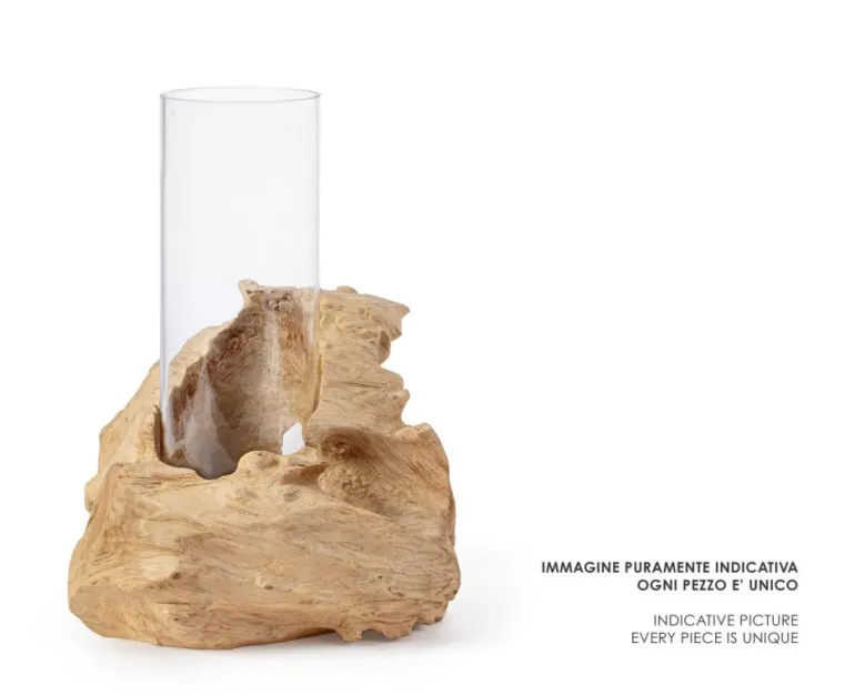 VETRO E RADICI DI LEGNO TEAK RECICLATO, FINITURA NATURALE. LE FORME ORIGINALI CREATE DAL LEGNO SONO SOLO INDICATIVE, TUTTI I PRODOTTI SARANNO DIVERSI L’UNO DALL’ALTRO.