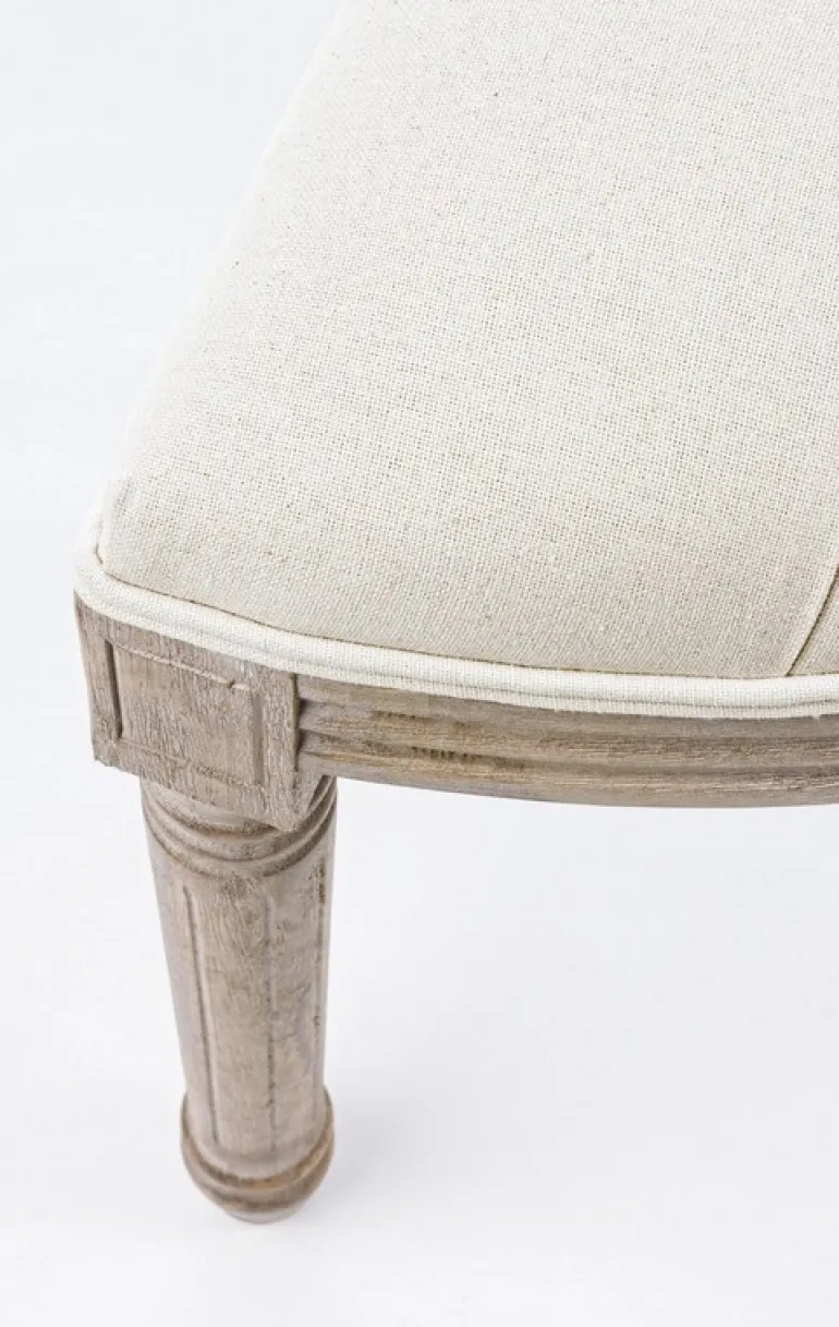 STRUTTURA IN LEGNO DI BETULLA E RUBBERWOOD. SEDUTA RIVESTITA IN TESSUTO (40% POLIESTERE, 30% COTONE E 30% LINO). GAMBE DA ASSEMBLARE.