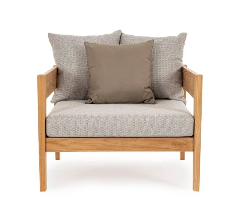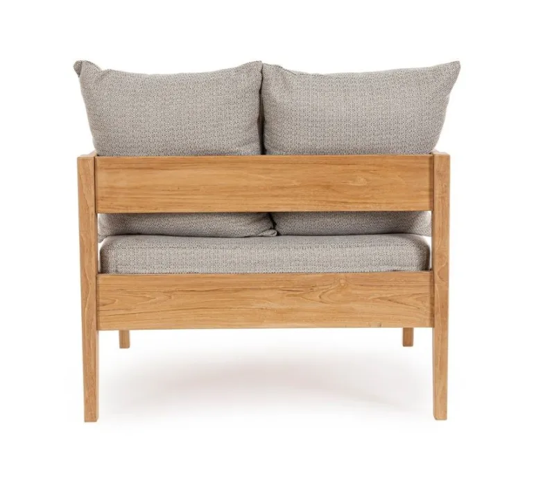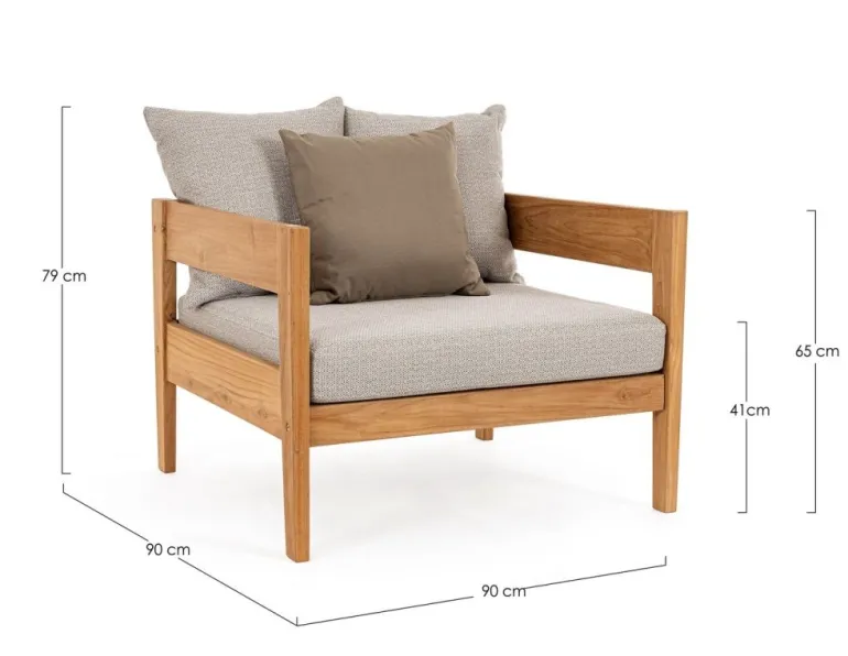 LEGNO TEAK FSC 100%, FINITURA NATURALE. CUSCINI SFODERABILI CON TESSUTO IDROREPELLENTE SUNPROOF OLEFIN (100% POLIPROPILENE). VITERIA IN ACCIAIO GALVANIZZATO. SI RACCOMANDA DI NON ESPORRE L’ARTICOLO ALLA LUCE DIRETTA DEL SOLE ED ALLE INTEMPERIE. QUESTO PRODOTTO È CARATTERIZZATO DALLA PRESENZA DI TASSELLI IN LEGNO DELLA STESSA NATURA. EVENTUALI FESSURE, CREPE O IMPERFEZIONI,