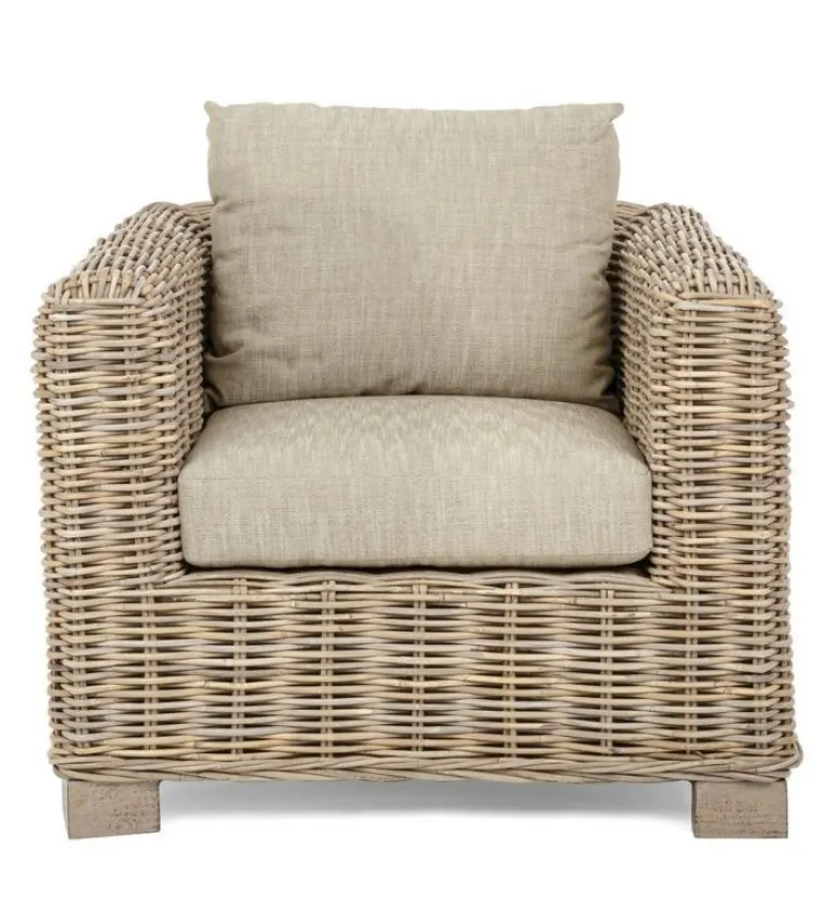 STRUTTURA IN LEGNO DI MANGO E RATTAN, INTRECCIO IN KUBU, FINITURA NATURALE A BASE DI NITROCELLULOSA. CUSCINI SFODERABILI CON TESSUTO PER USO INTERNO (55% COTONE, 45% POLIESTERE). SI RACCOMANDA DI NON ESPORRE IL MOBILE ALLA LUCE DIRETTA DEL SOLE E ALLE INTEMPERIE. IMBALLO SENZA CARTONE.