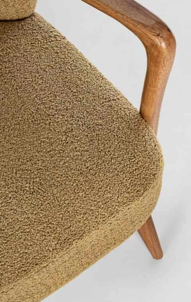 STRUTTURA IN LEGNO DI PINO E COMPENSATO. GAMBE E BRACCIOLI IN RUBBERWOOD. RIVESTIMENTO IN POLIESTERE EFFETTO LANA. DENSITA’ IMBOTTITURA IN SCHIUMA POLIURETANICA 24 KG/M3. NON SFODERABILE. GAMBE DA ASSEMBLARE.