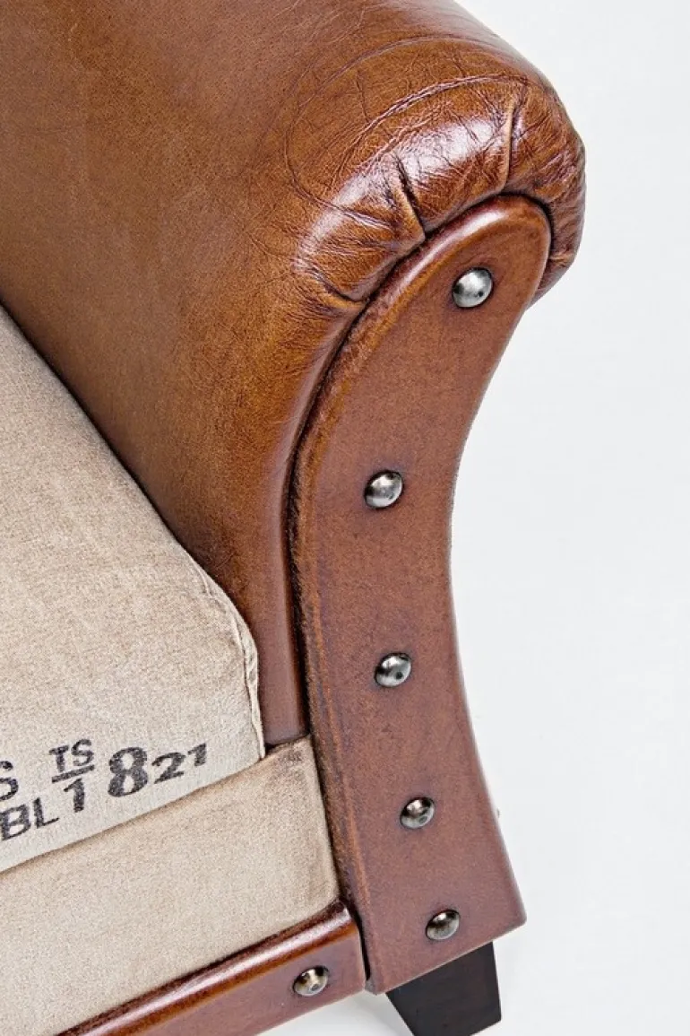 STRUTTURA IN LEGNO DI MANGO, RIVESTIMENTO IN TELA RICICLATA E VERA PELLE DI BUFALO.
