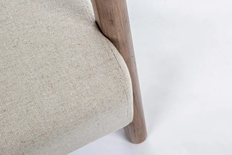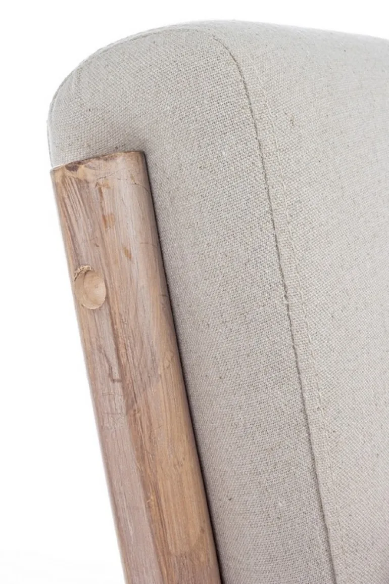 STRUTTURA IN LEGNO RUBBERWOOD. SEDUTA NON SFODERABILE RIVESTITA IN TESSUTO (40% COTONE, 30% POLIESTERE E 30% LINO).