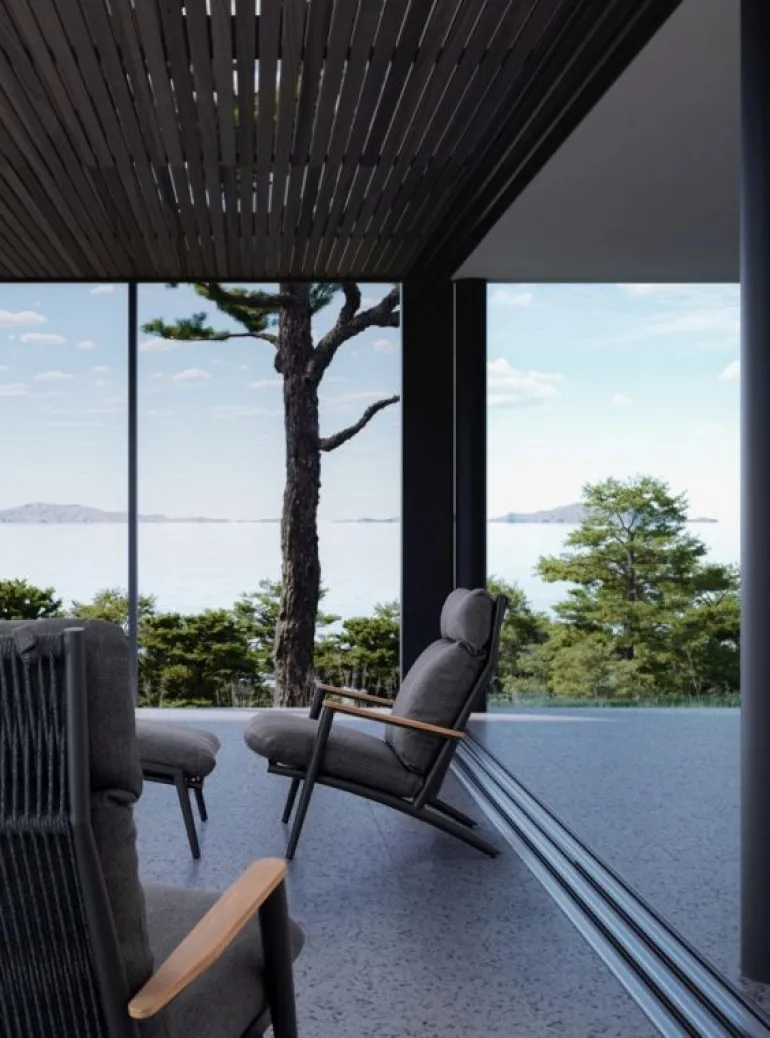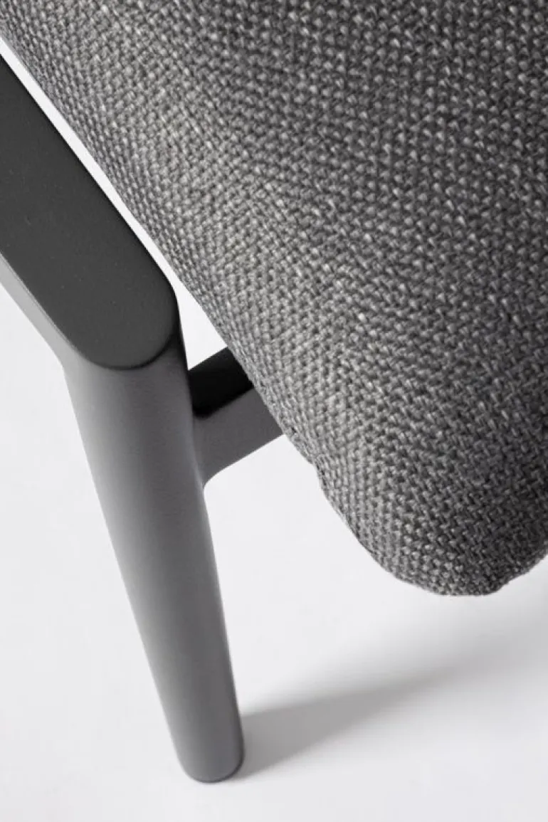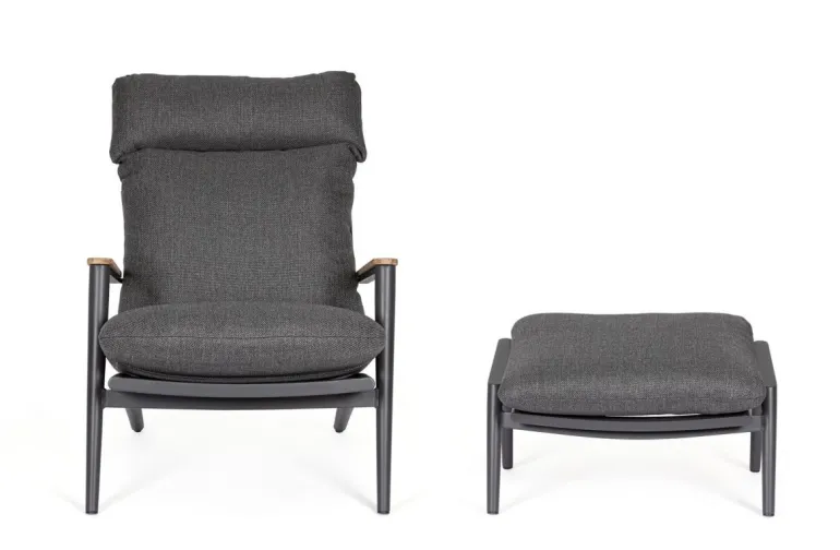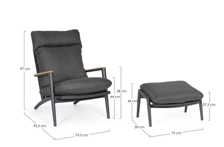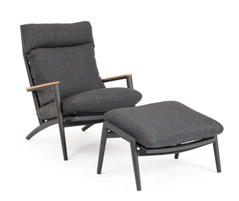 STRUTTURA IN ALLUMINIO VERNICIATO A POLVERE (POLIESTERE). SCHIENALE CON INTRECCIO IN CORDE DI POLIESTERE. BRACCIOLI CON INSERTI IN TEAK. CUSCINI SFODERABILI CON TESSUTO IDROREPELLENTE OLEFIN (100% POLIPROPILENE).