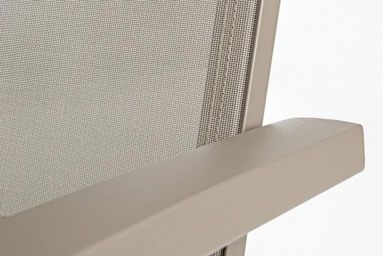 STRUTTURA IN ALLUMINIO, VERNICIATO A POLVERE (POLIESTERE). SEDUTA E SCHIENALE RIVESTITI IN TEXTILENE PHIFER 1X1. SCHIENALE RECLINABILE (5 POSIZIONI). PIEGHEVOLE