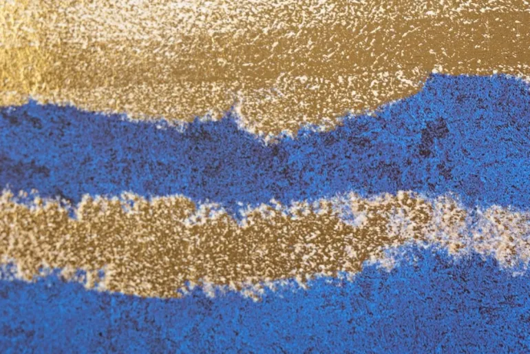 STAMPA SU TELA CON APPLICAZIONI FOGLI DORATI, MDF.