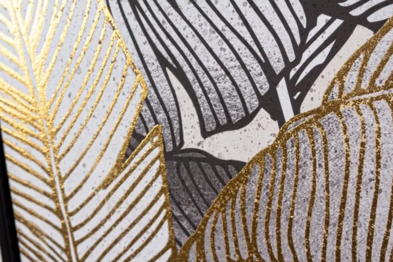 STAMPA SU TELA CON APPLICAZIONI FOGLI DORATI, MDF.