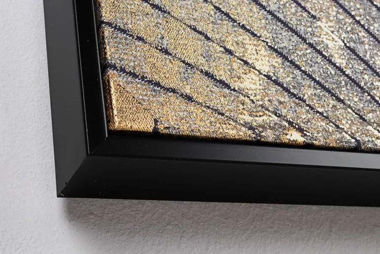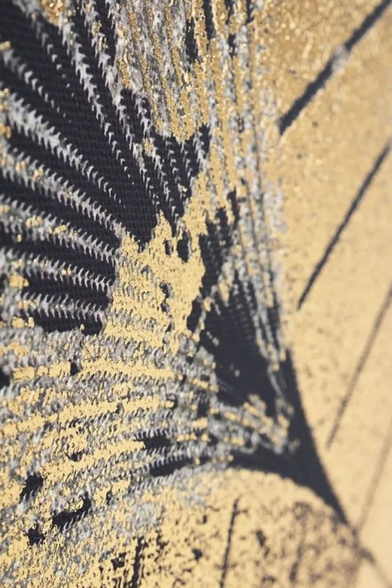 STAMPA SU TELA CON APPLICAZIONI FOGLI DORATI, MDF.
