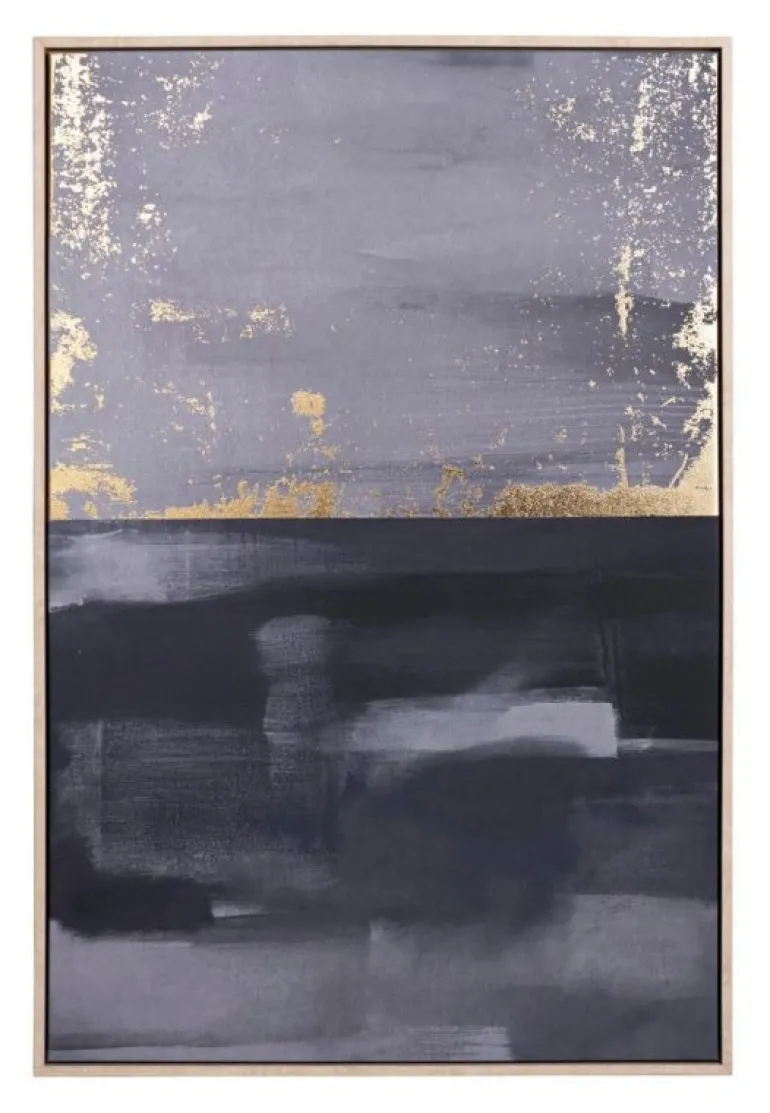 STAMPA SU TELA CON APPLICAZIONI AD OLIO E FOGLI DORATI, MDF.
