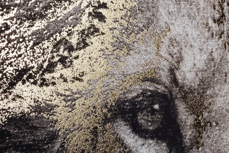 STAMPA SU TELA CON APPLICAZIONI AD OLIO E FOGLI DORATI, MDF.