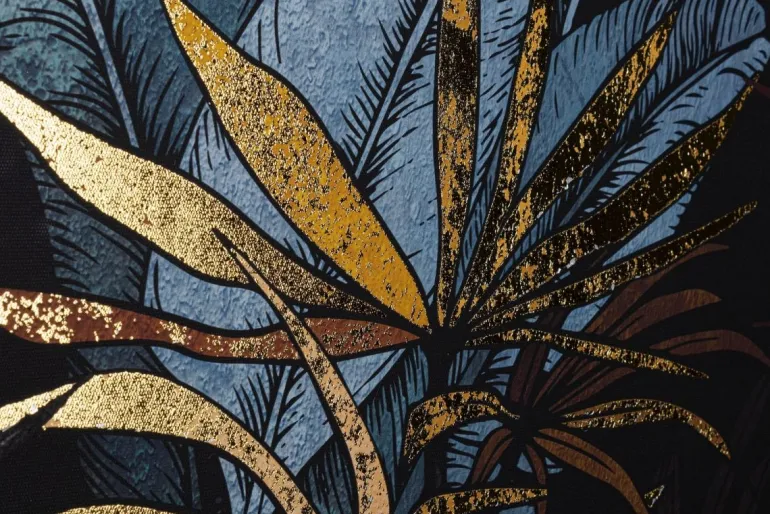 STAMPA SU TELA CON APPLICAZIONI AD OLIO E FOGLI DORATI, MDF.