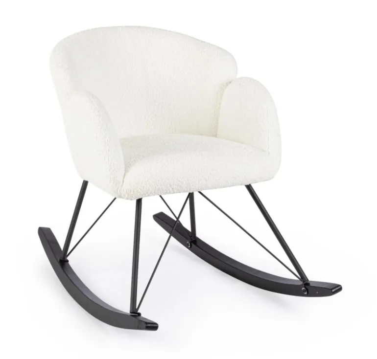 SEDIA A DONDOLO EFFETTO BOUCLE’ BIANCA – SIBILLA