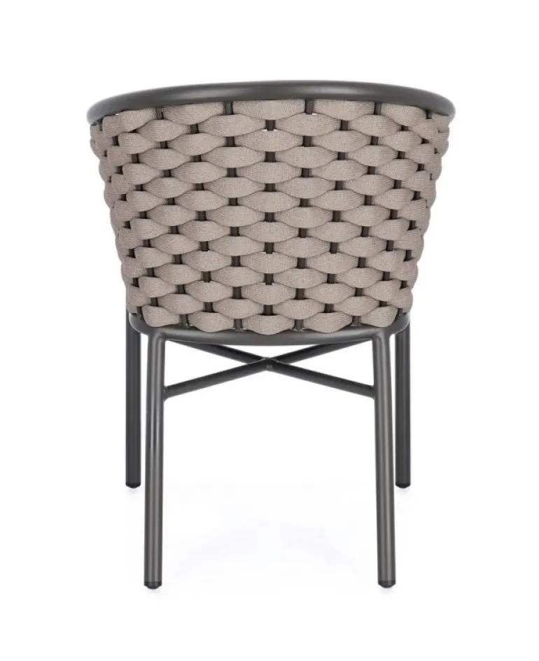 STRUTTURA IN ALLUMINIO VERNICIATA A POLVERE (POLIESTERE). INTRECCIO PER ESTERNO IN CORDA POLIESTERE IMBOTTITA IN GOMMA (POLIETILENE). CUSCINI SFODERABILI IN TESSUTO IDROREPELLENTE 100% POLIESTERE. IMPILABILE. IMBALLO SENZA CARTONE.