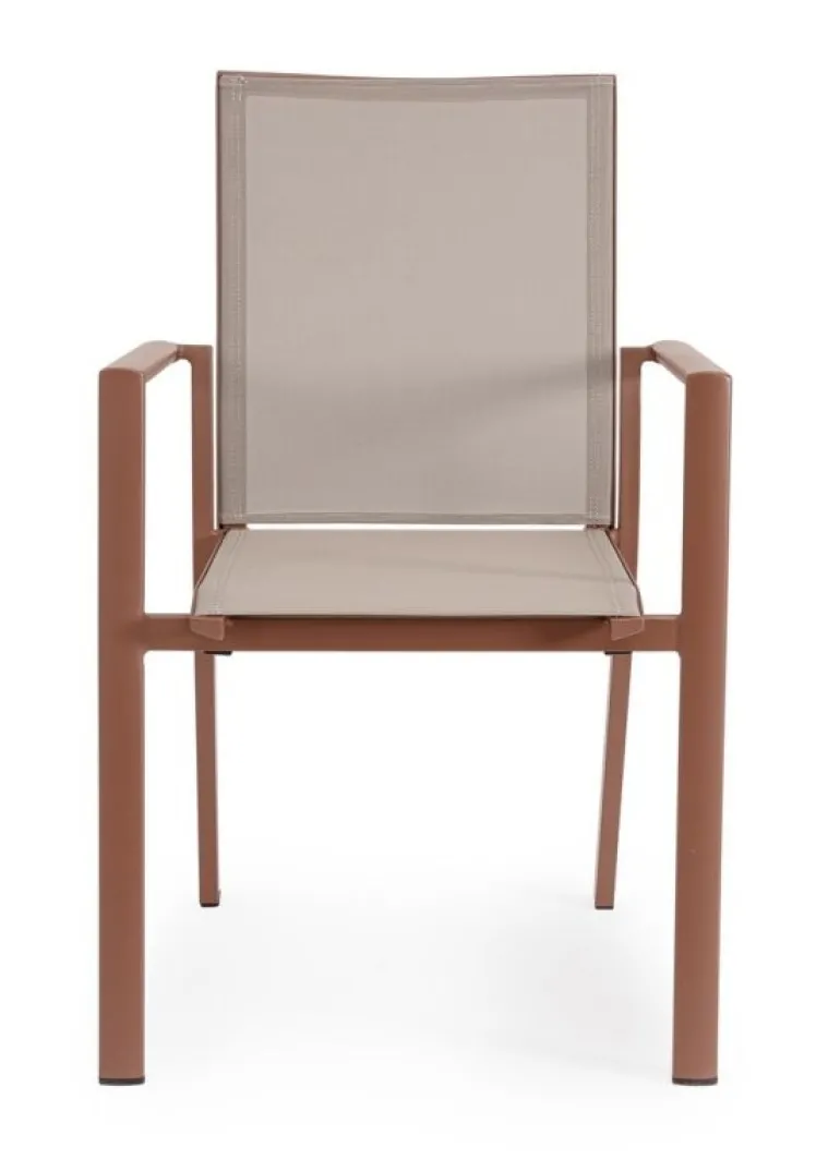 STRUTTURA IN ALLUMINIO, VERNICIATO A POLVERE (POLIESTERE). SEDUTA E SCHIENALE IN TEXTILENE 1X1. IMPILABILE.