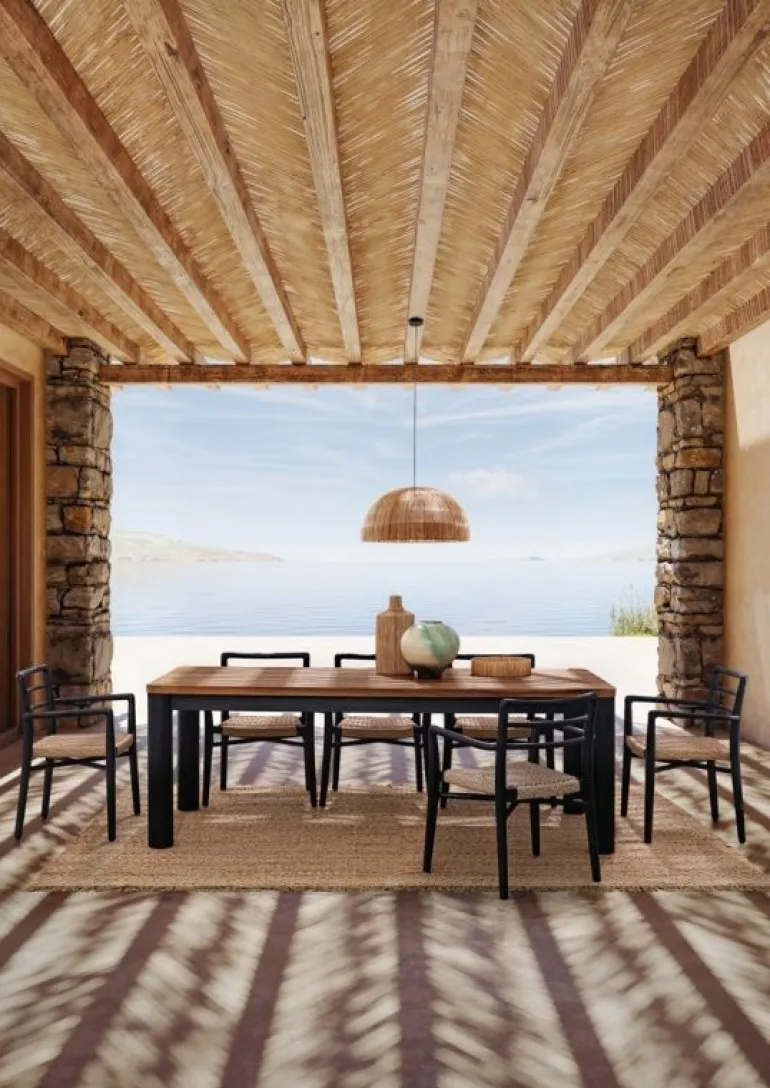 STRUTTURA IN LEGNO TEAK – SVLK (LEGNO CERTIFICATO PROVENIENTE DA FORESTE SOSTENIBILI). FINITURA RUSTICA CON VERNICE A BASE ACRILICA. SEDUTA CON INTRECCIO IN FIBRA SINTETICA. QUESTO PRODOTTO È CARATTERIZZATO DALLA PRESENZA DI TASSELLI IN LEGNO DELLA STESSA NATURA. EVENTUALI FESSURE, CREPE O IMPERFEZIONI, CHE POSSONO GENERARSI ANCHE NEL CORSO DEL TEMPO, SONO CARATTERISTICHE DI QUESTO MATERIALE E RENDONO OGNI PEZZO UNICO E ORIGINALE. IMPILABILE.
