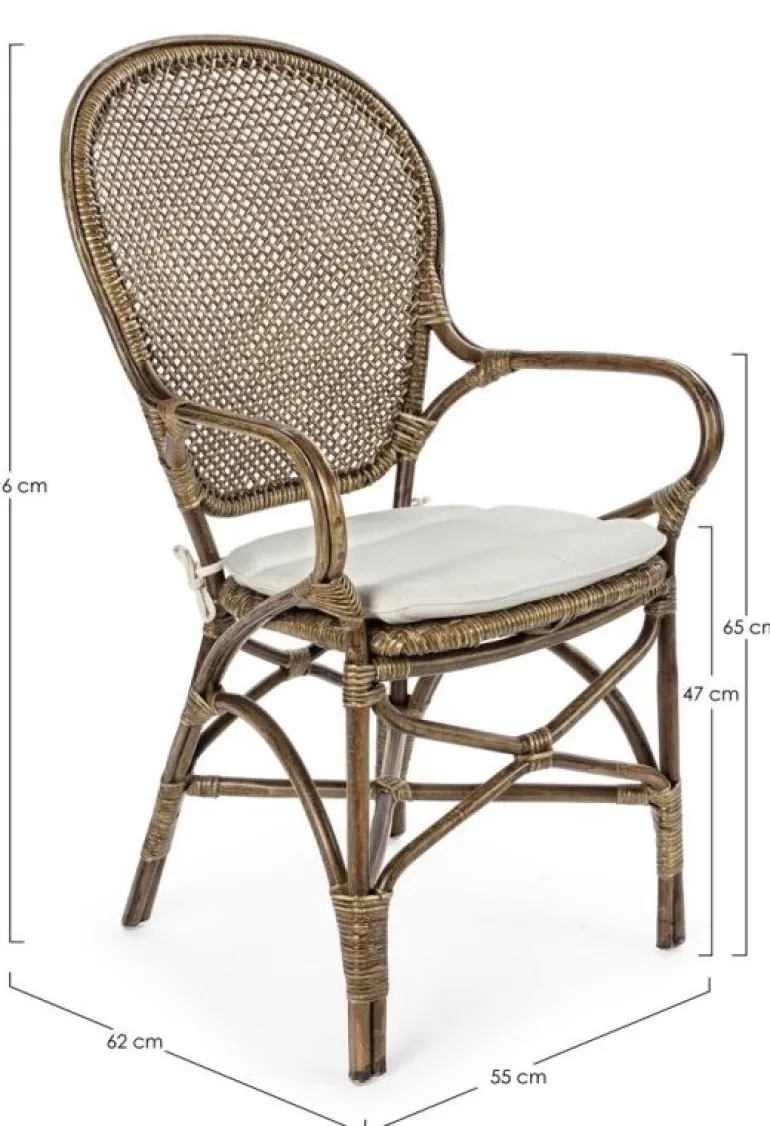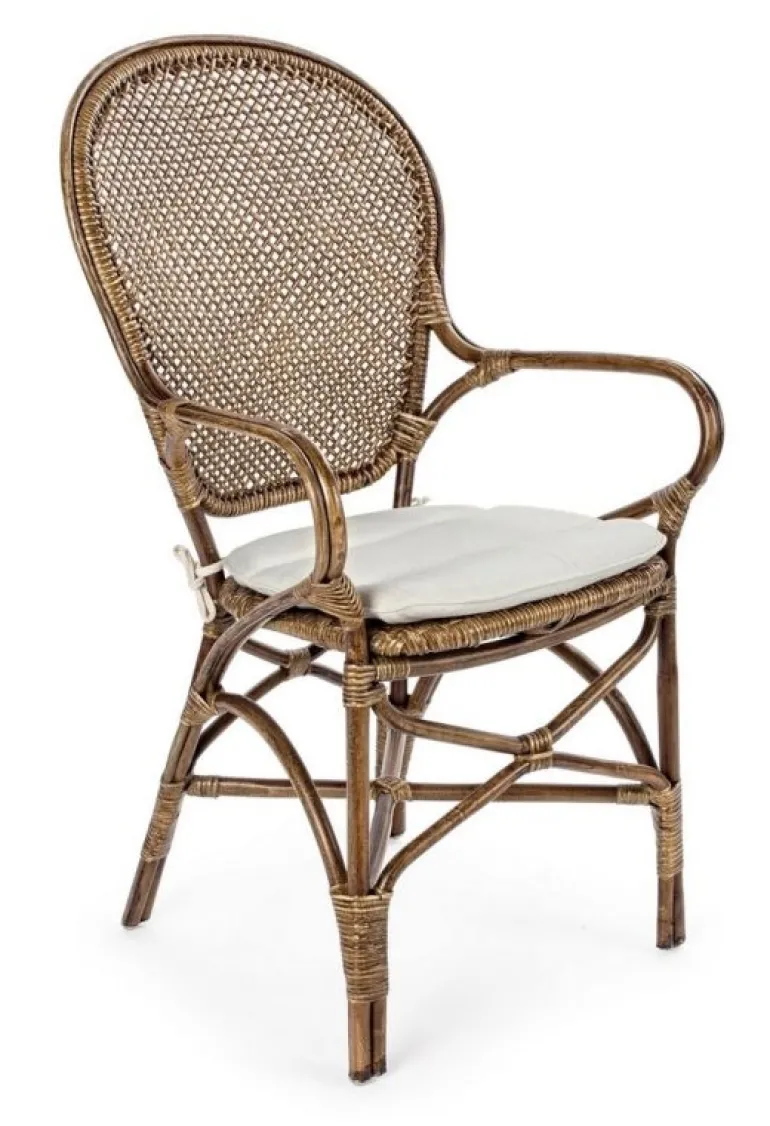 SEDIA CON BRACCIOLI IN FIBRE NATURALI MIELE – EDELINA