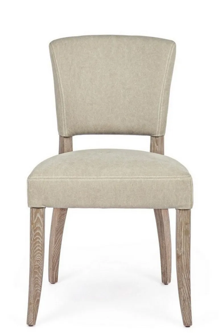 STRUTTURA IN LEGNO DI FRASSINO CON FINITURA A BASE DI NITROCELLULOSA, RIVESTIMENTO IN TESSUTO (15% POLIESTERE 85% COTONE). SCHIENALE CON APPLICAZIONE DI BORCHIE IN METALLO. IMBOTTITURA IN SCHIUMA POLIURETANICA DENSITA’ SEDUTA 30KG/M3, SCHIENALE 25KG/M3.