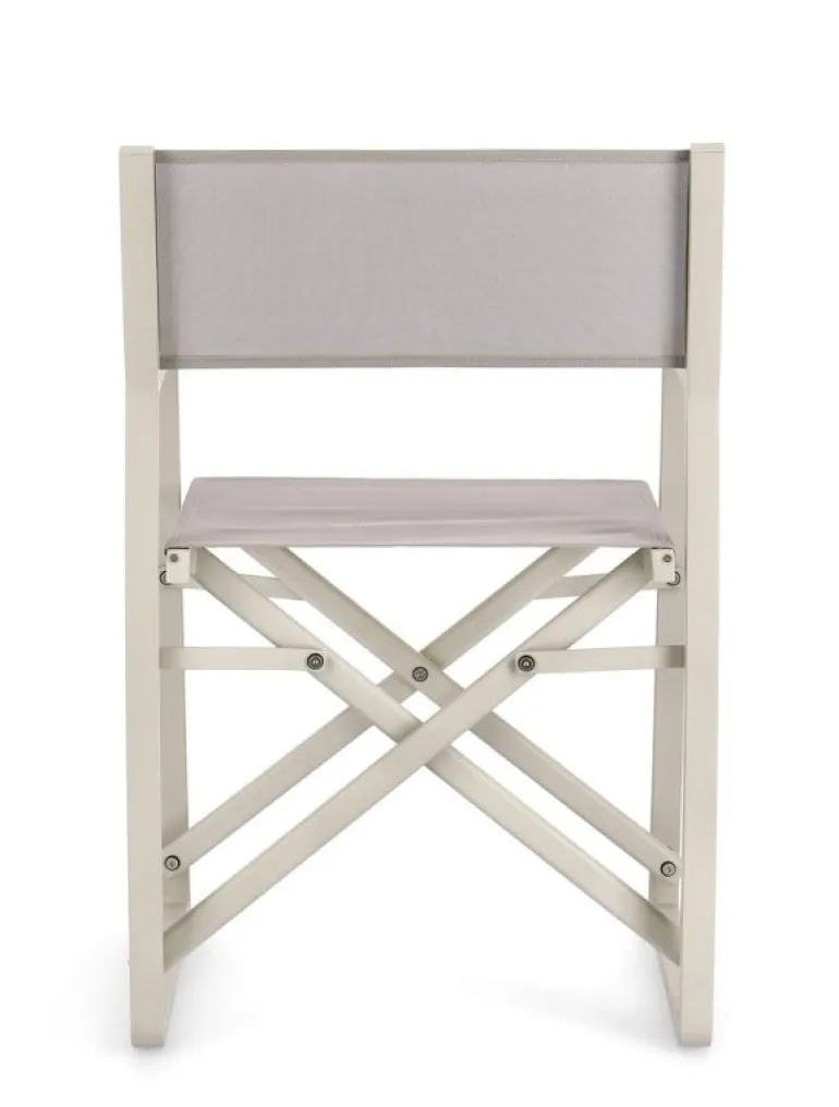 STRUTTURA IN ALLUMINIO, VERNICIATO A POLVERE (POLIESTERE). SEDUTA E SCHIENALE IN TEXTILENE 1X1. VITERIA IN ACCIAIO INOSSIDABILE. PIEGHEVOLE.