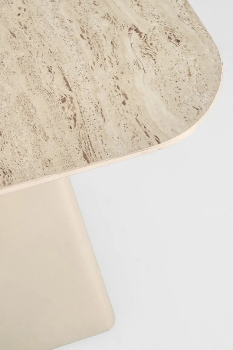 PIANO IN CERAMICA, EFFETTO TRAVERTINO. BASE IN ACCIAIO VERNICIATA A POLVERE EPOSSIDICA. BASE DA ASSEMBLARE.