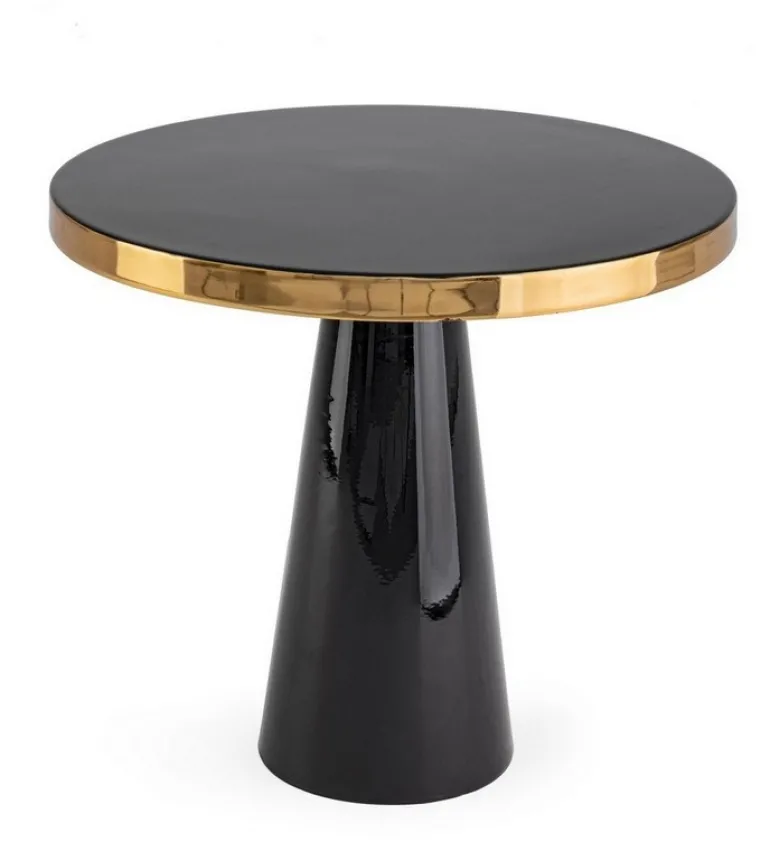 STRUTTURA IN ACCIAIO CON FINITURA A SMALTO, BORDO PIANO CON FINITURA PLACCATA OTTONE. GAMBA DA ASSEMBLARE.