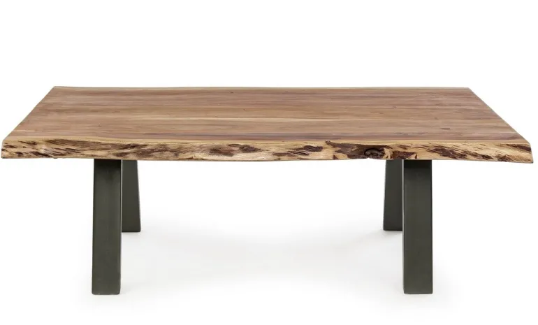 GAMBE IN ACCIAIO VERNICIATO A POLVERE EPOSSIDICA. PIANO IN LEGNO DI ACACIA CON BORDI IRREGOLARI (EFFETTO LEGNO VIVO). FINITURA A BASE DI VERNICE POLIURETANICA. ESSENDO UN PIANO LAVORATO A MANO, LE FORME E LE MISURE DEL LEGNO SONO SOLO INDICATIVE. TUTTI I PRODOTTI SARANNO DIVERSI L’UNO DALL’ALTRO. GAMBE DA ASSEMBLARE.