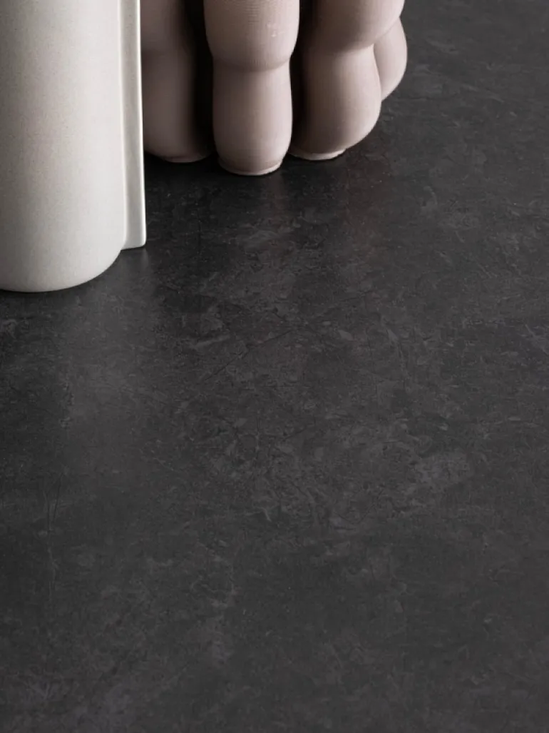 BASE IN ACCIAIO VERNICIATO A POLVERE EPOSSIDICA. PIANO IN GRES PORCELLANATO CON EFFETTO MARMO NERO OPACO. DA ASSEMBLARE.