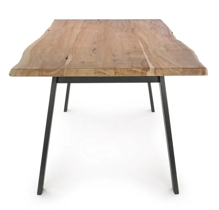GAMBE IN ACCIAIO VERNICIATO A POLVERE EPOSSIDICA. PIANO IN LEGNO DI ACACIA CON BORDI IRREGOLARI (EFFETTO LEGNO VIVO). FINITURA A BASE DI VERNICE POLIURETANICA. ESSENDO UN PIANO LAVORATO A MANO, LE FORME E LE MISURE DEL LEGNO SONO SOLO INDICATIVE. TUTTI I PRODOTTI SARANNO DIVERSI L’UNO DALL’ALTRO. GAMBE DA ASSEMBLARE.