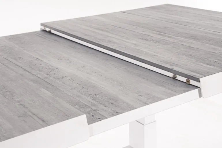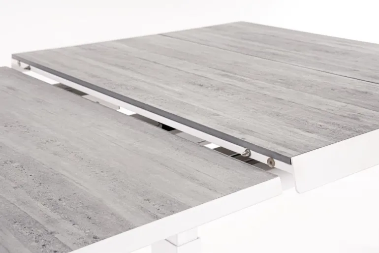 STRUTTURA IN ALLUMINIO VERNICIATA A POLVERE (POLIESTERE). PIANO IN CERAMICA (SPESSORE 10MM). ALLUNGABILE CON PROLUNGA AUTOMATICA. ALTEZZA REGOLABILE TRAMITE MANIGLIA. VITERIA IN ACCIAIO INOSSIDABILE. PIEDINI REGOLABILI. DA ASSEMBLARE.