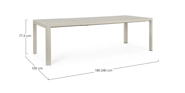 STRUTTURA IN ALLUMINIO, VERNICIATO A POLVERE (POLIESTERE). ALLUNGABILE CON APERTURA TELESCOPICA. VITERIA IN ACCIAIO INOSSIDABILE. GAMBE DA ASSEMBLARE.